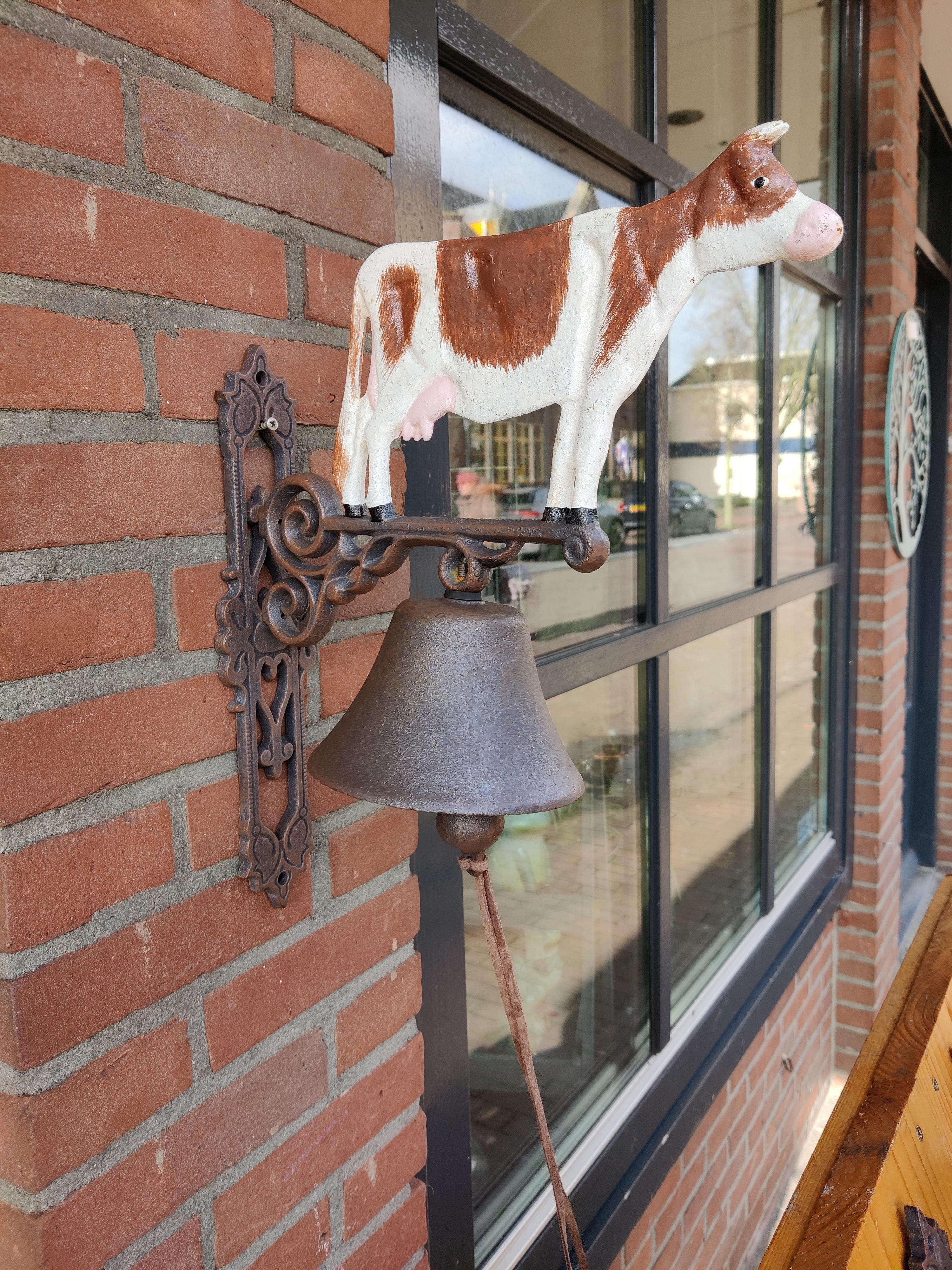 Gietijzeren bel met rood bonte koe